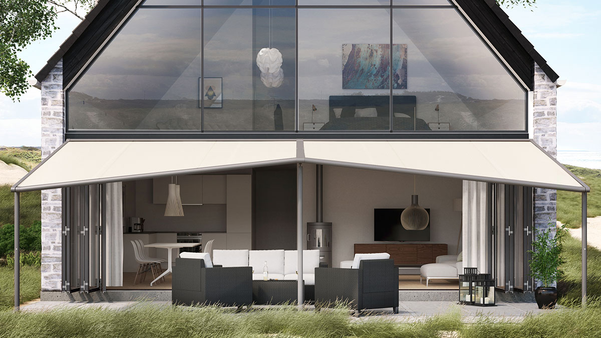 Die schlanke Pergolamarkise fügt sich raumsparend und kompakt auch auf schmalen Balkonen oder Terassen ein, ohne dass Sie dafür Stabilität oder Schutz einbüßt. Die seitlichen Säulen und Führungsschienen halten das Markisentuch stets in Form und sorgen für optimale Tuchspannung in jeder Ausfahrposition.