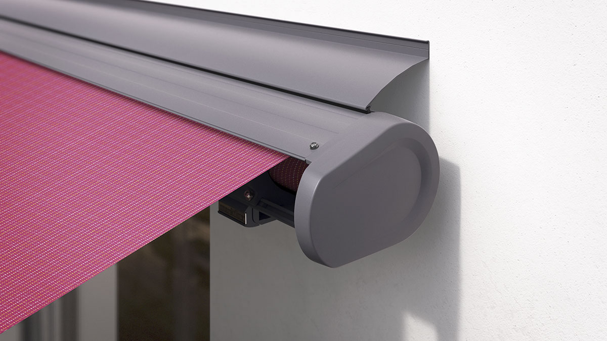 Die Optik einer Kassettenmarkise mit der Leichtigkeit der Halbkassette. Die rund geformte Schale bietet Schutz für das Markisentuch und lässt sich individuell anpassen.