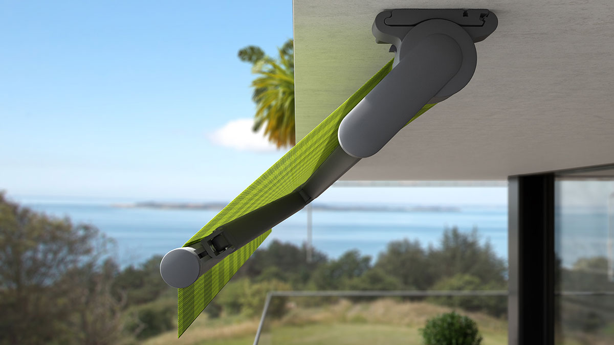 Organisches Design und eine innovative Armtechnologie komplettieren diese offene Markise für große Flächen.